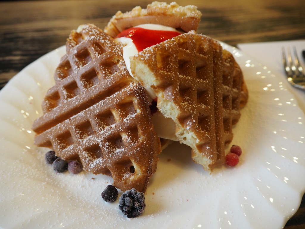 温かいサクサクなワッフルに冷たいアイスがとろけて、絶品です✿